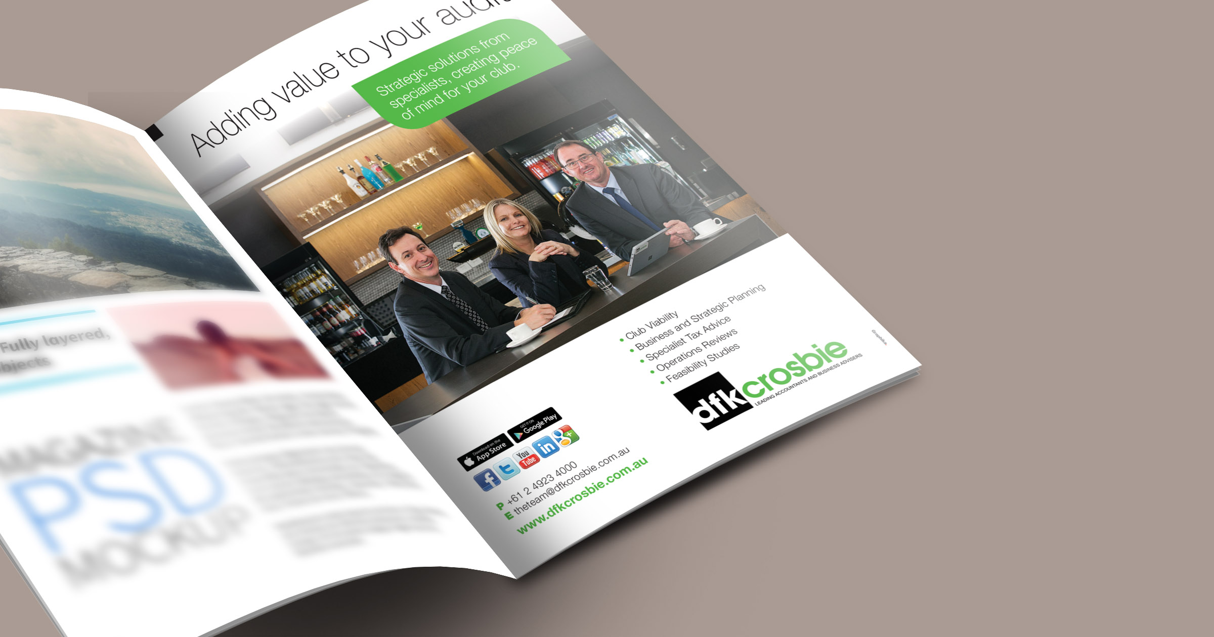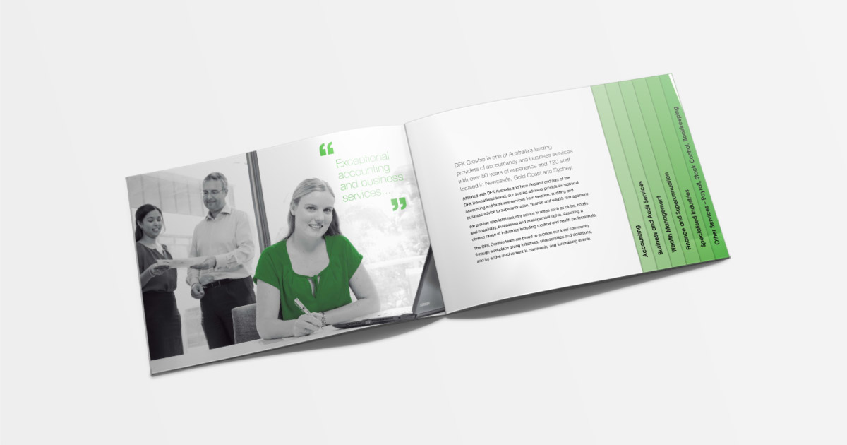 DFK Crosbie are a well recognised and established business that have been providing accounting and business advice for over 50 years. Graphika have had the pleasure of working closely with them to reproduce most of their marketing material, including brochures, press, internal documents and we art directed their photography.