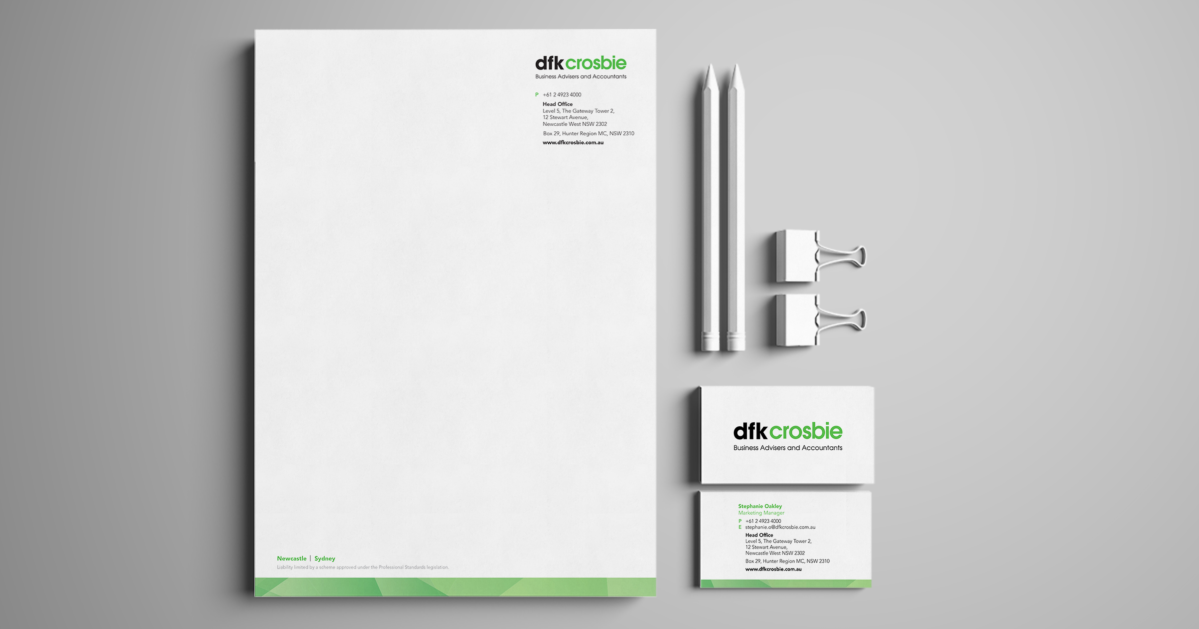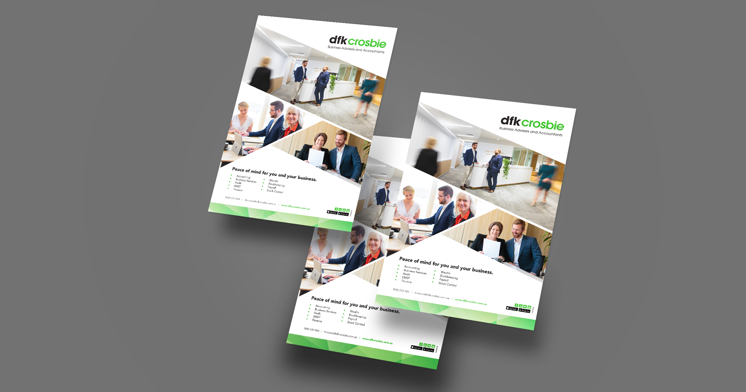 DFK Crosbie are a well recognised and established business that have been providing accounting and business advice for over 50 years. Graphika have had the pleasure of working closely with them to reproduce most of their marketing material, including brochures, press, internal documents and we art directed their photography. Logo design, business cards, letterheads, with compliments, website design, branding, photography, accounting, business.
