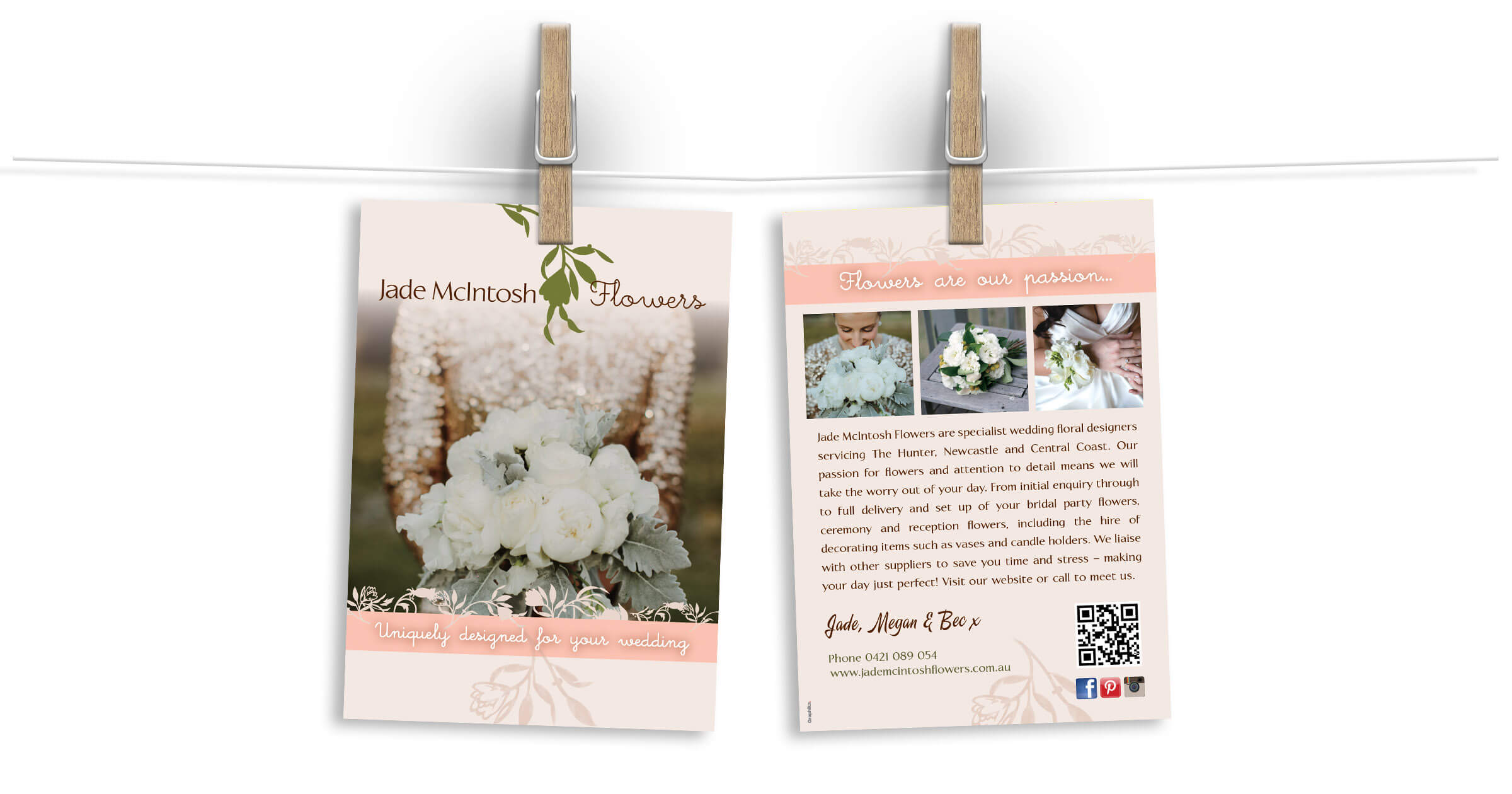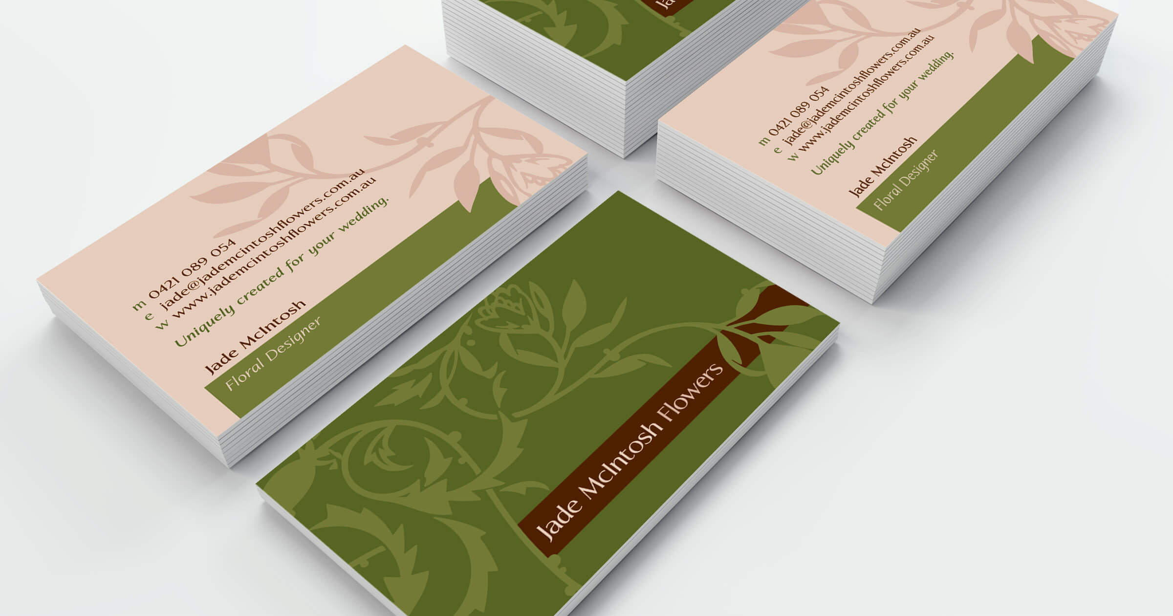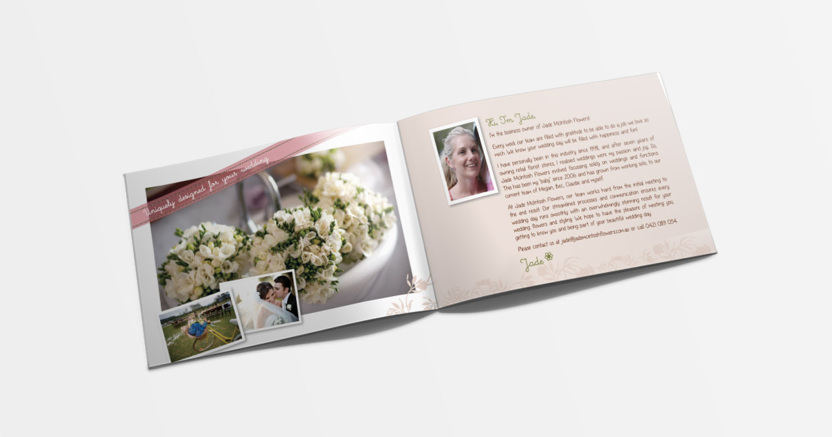 Jade McIntosh Flowers' branding has evolved over the years and has remained simple and stylish. We have not only created her logo, stationery, booklets and brochures - but her website too!
