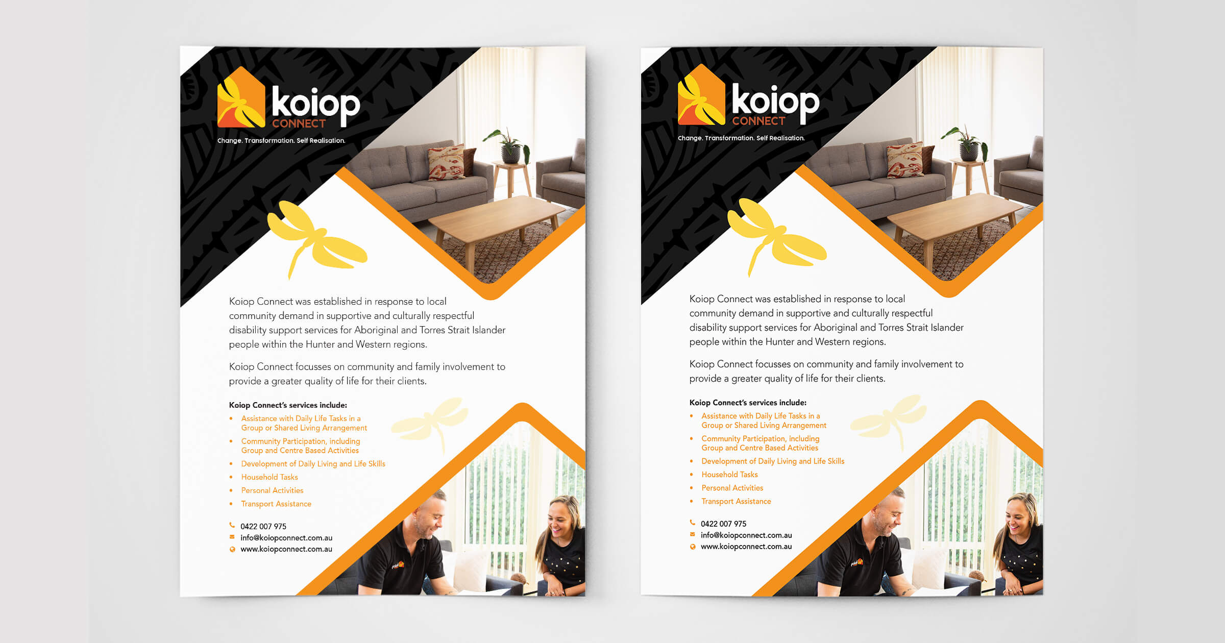 Reflective of the meaning of Koiop, Dragonfly, which symbolises change and the perspective of self-realisation, the logo was created using traditional and respectful colours.