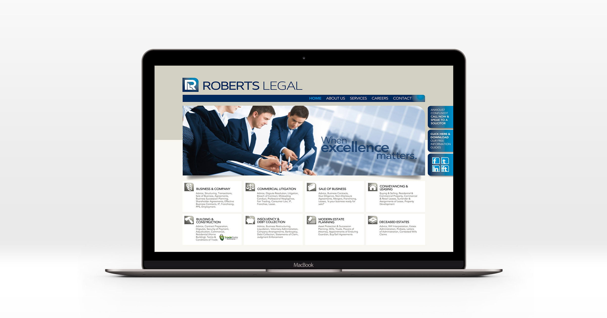 Roberts Legal is a forward thinking, award winning legal practice. We have worked with Roberts Legal on their stationery, website design, brochures, booklets, press advertising and more.
